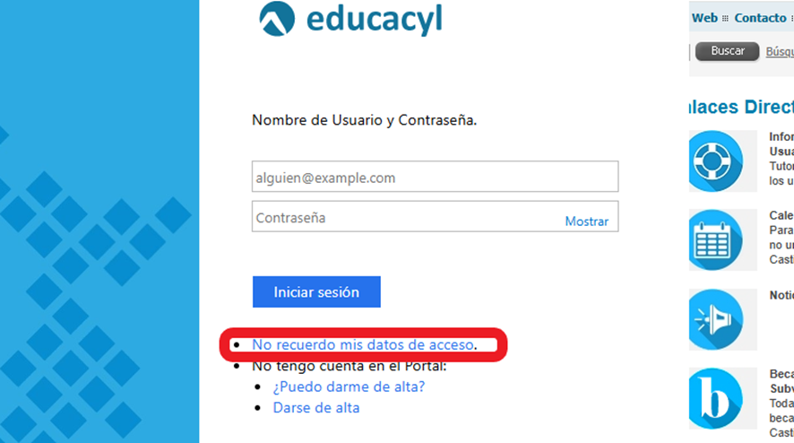 2. Seleccionar la opción ‘No recuerdo mis datos de acceso’:
