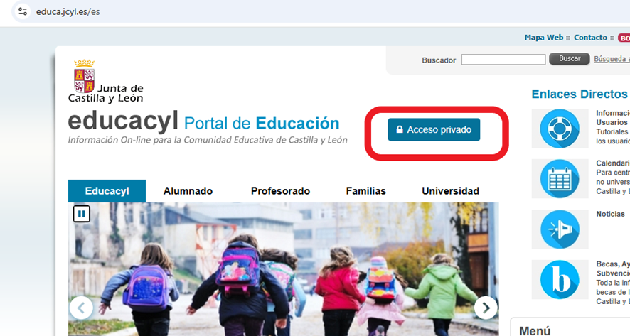 1. Entrar en el portal de Educa.jcyl.es y hacer clic en ‘Acceso privado’.